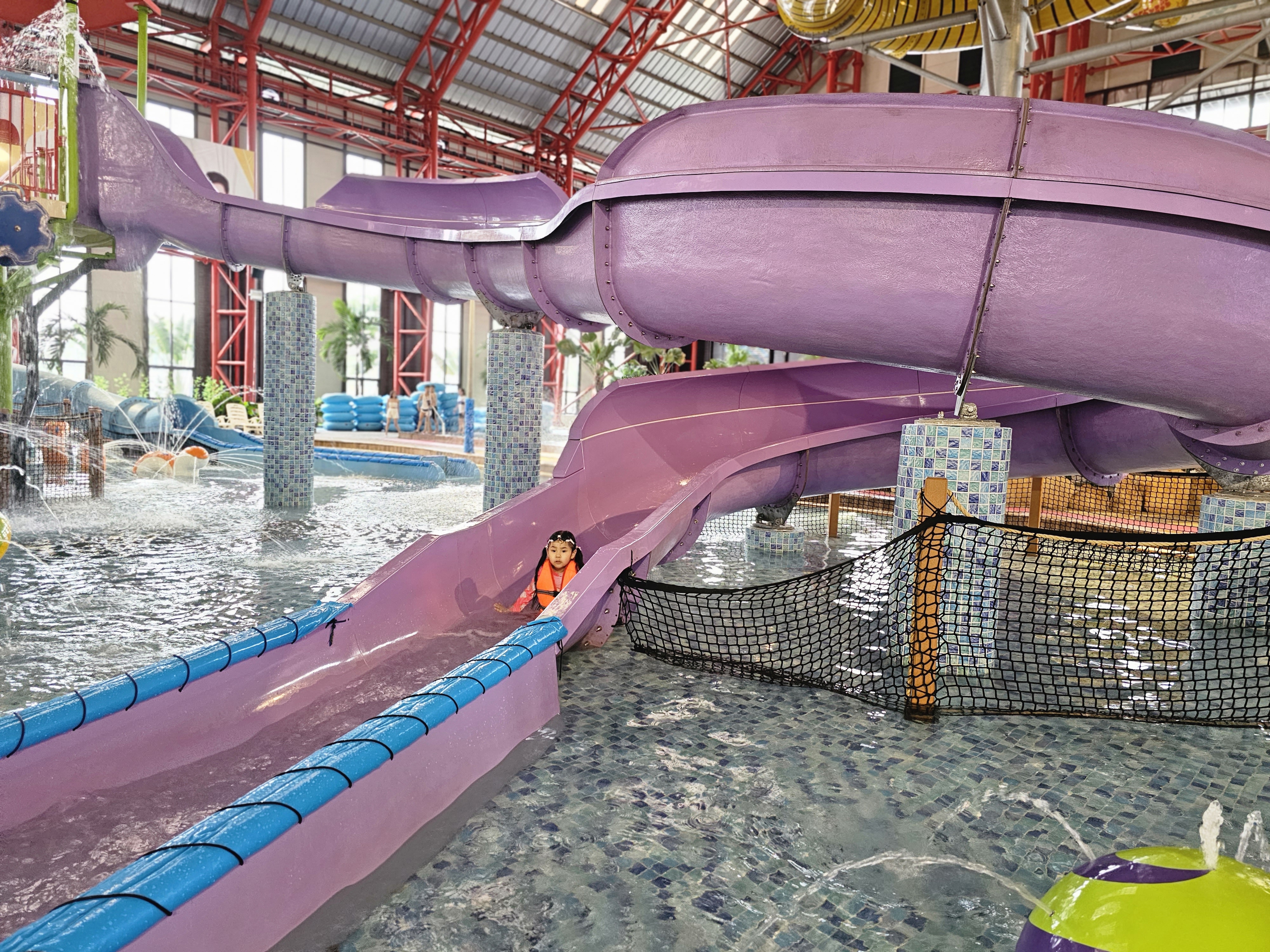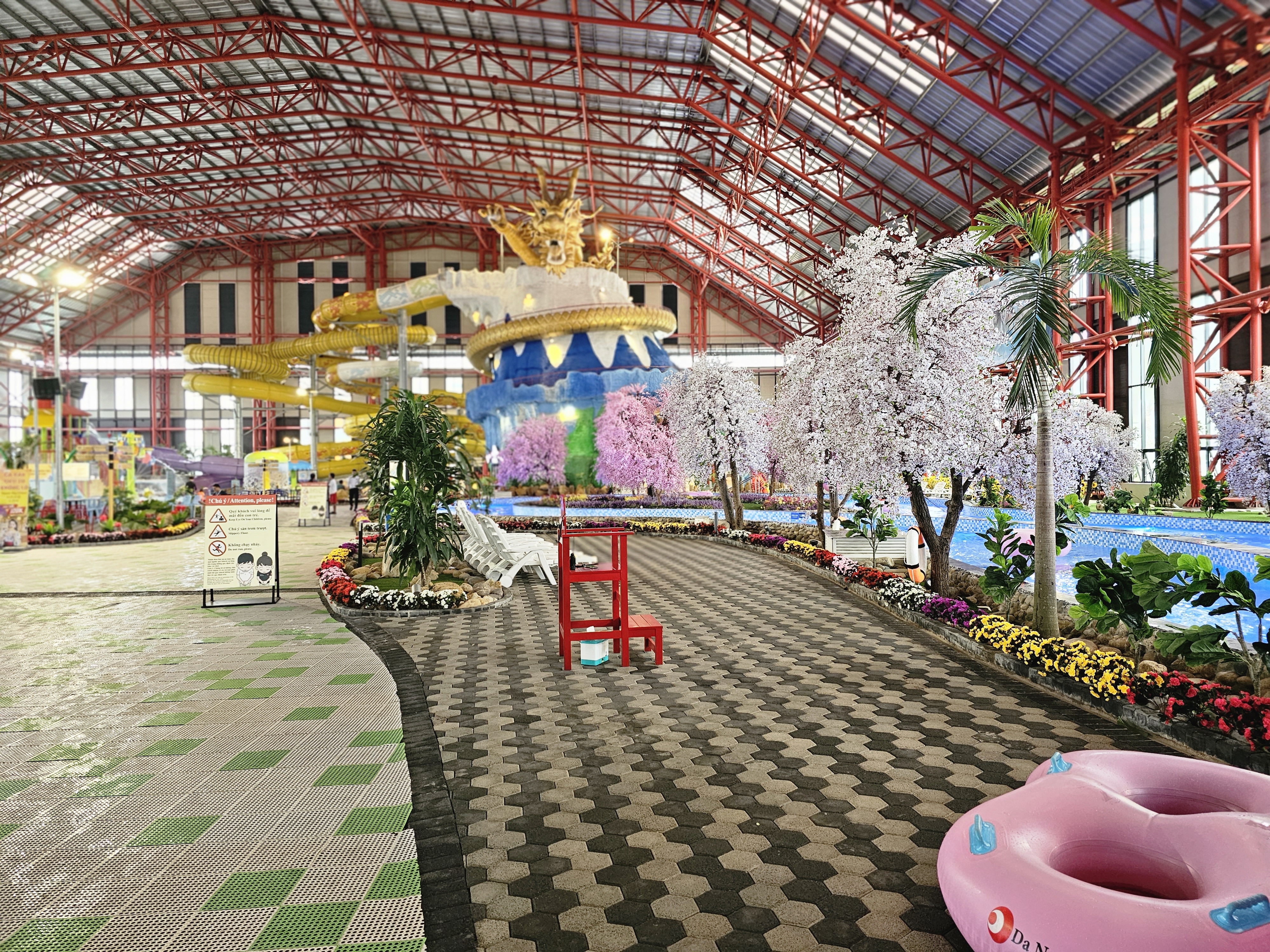 엄청 큰 용 슬라이드가 있는데, 올라가는 길이 다소 길 수도 있지만 위에서 내려다보면 멋진 워터파크의 전경을 한눈에 담을 수 있어요. 너무 넓고 멋있지 않나요?