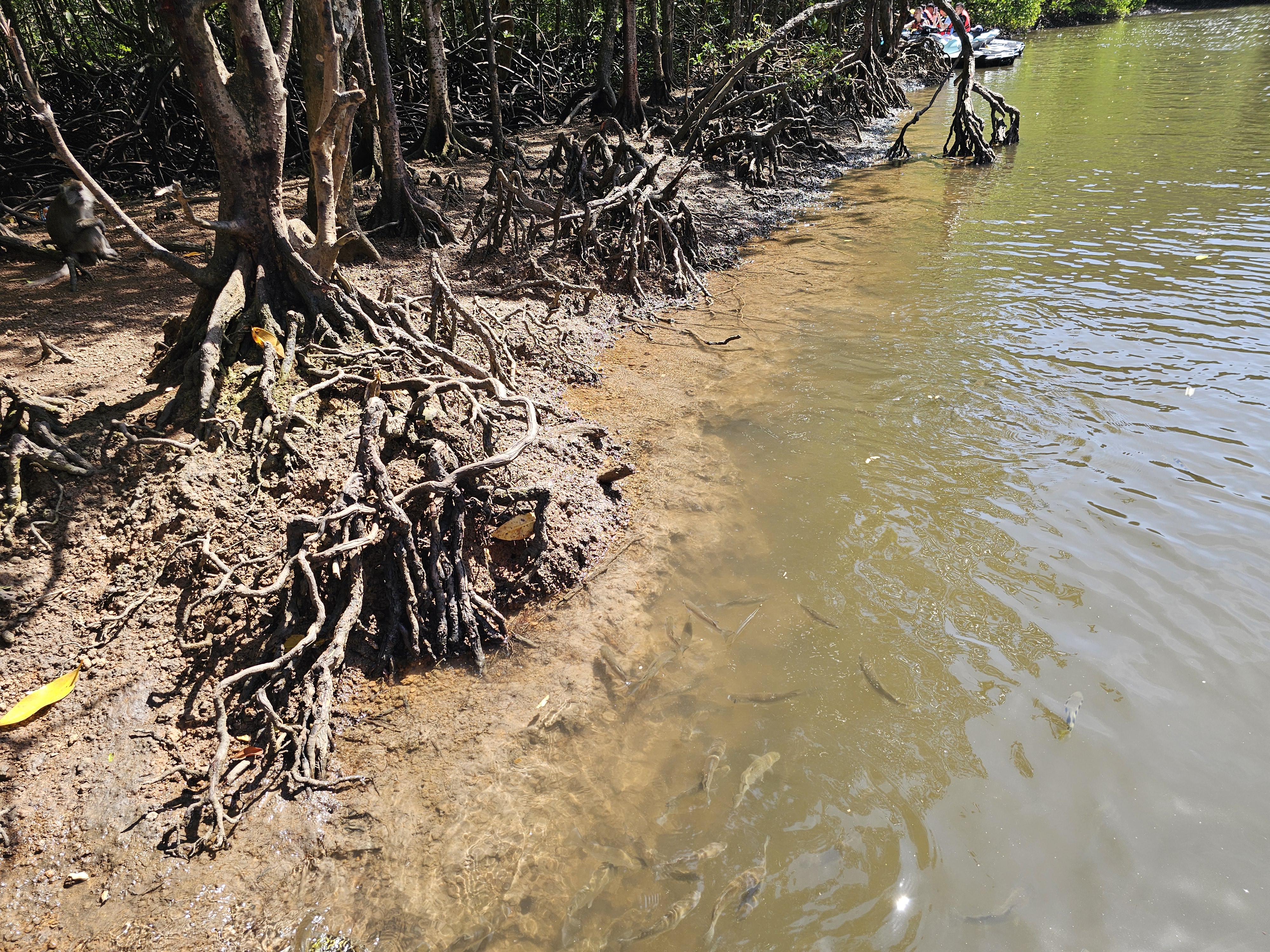 맹그로브숲을 지나 달리고 달리다 보니 하늘을 날아다니는 랑카위의 상징 갈색 독수리의 사냥도 함께 구경했답니다. 그리고 마지막으로 기다리고 기다리던 스노클링까지 하고 나면 모든 투어가 끝이 납니다. 선착장 매점에서 산 물고기밥 식빵을 뜯어주면 물고기가 모여들어요.