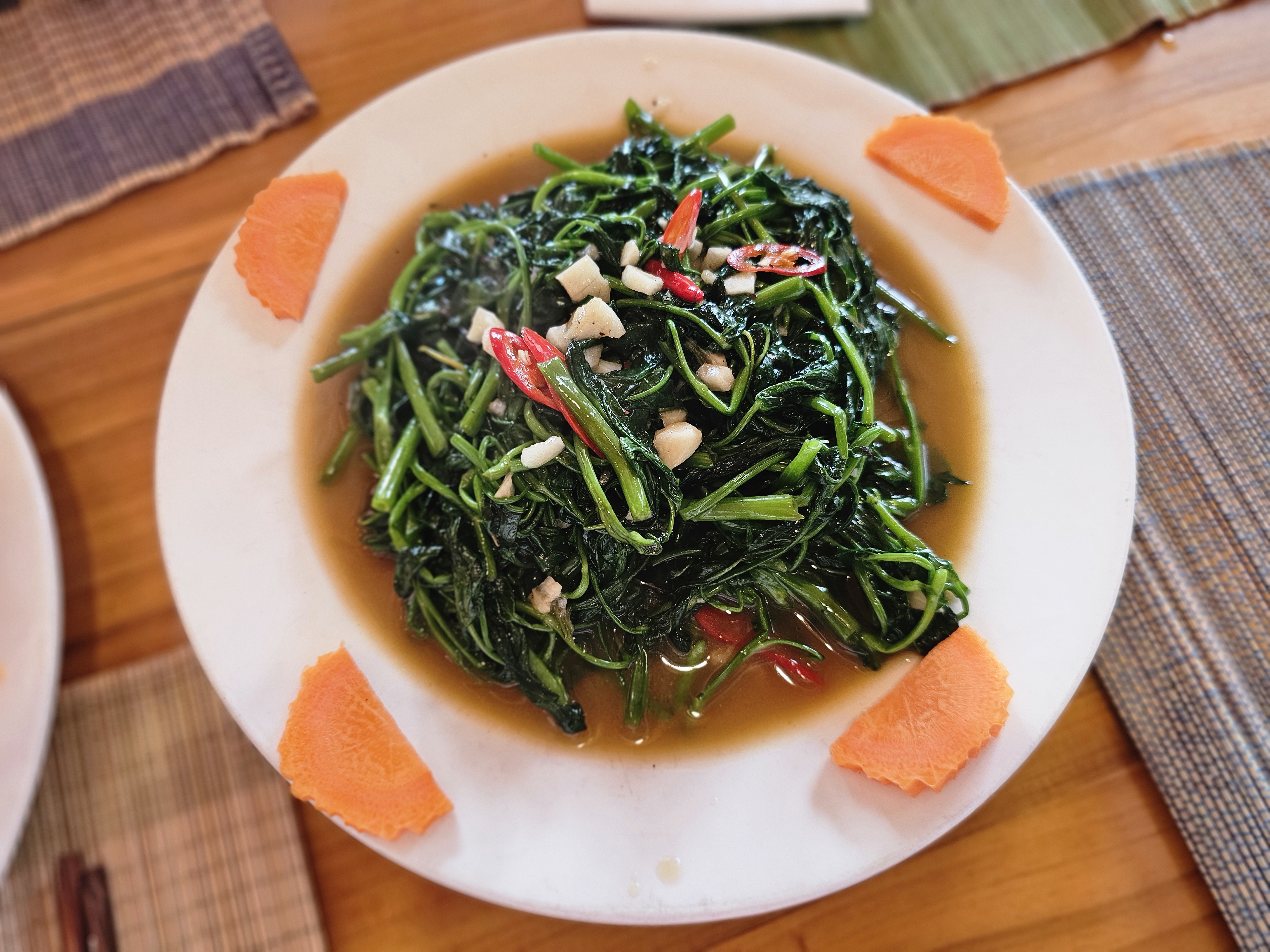 마늘 모닝글로리 볶음은 고소하고 향긋한 마늘 향이 모닝글로리와 잘 어울렸으며, 식감이 아주 좋아서 쌀밥과 먹으니 일품이었네요.