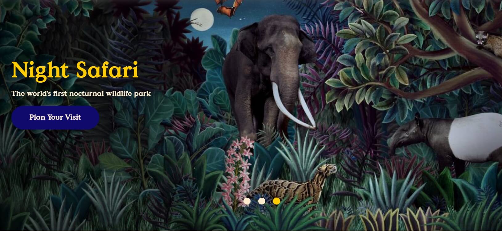 싱가포르 관광청이 수여하는 최고의 관광면소 부문에서 13회 수상한 명소인 싱가포르 나이트 사파리는 100종의 900마리에 가까운 동물들이 35헥다르의 공원에 서식하고 있으며, 생물 다양성 증진이라는 사명에 따라 이 공원은 멸종 위기에 처한 종도 41% 서식하고 있어 사육에도 중점을 두고 있습니다. 그리하여 수년에 걸쳐 말라야 호랑이, 아시아 코끼리 등 멸종 위기에 처한 종을 보호하고 있습니다. 사파리 전체가 야생동물 보호구역이기 때문에 희귀 동물들이 서식하고 있으며, 각 동물들의 야생성도 가까이에서 두 눈으로 볼 수 있는 특별한 경험을 할 수 있습니다.