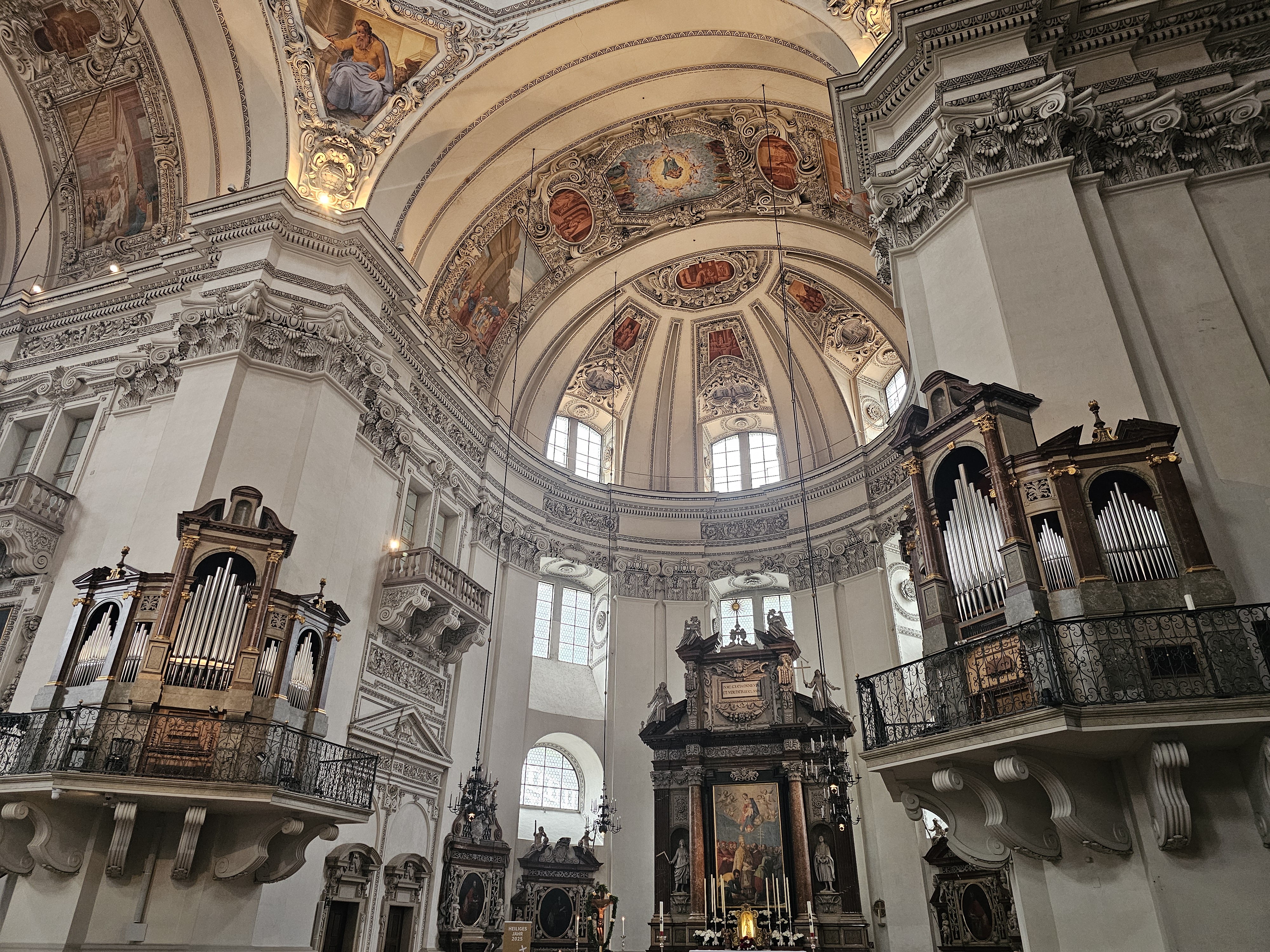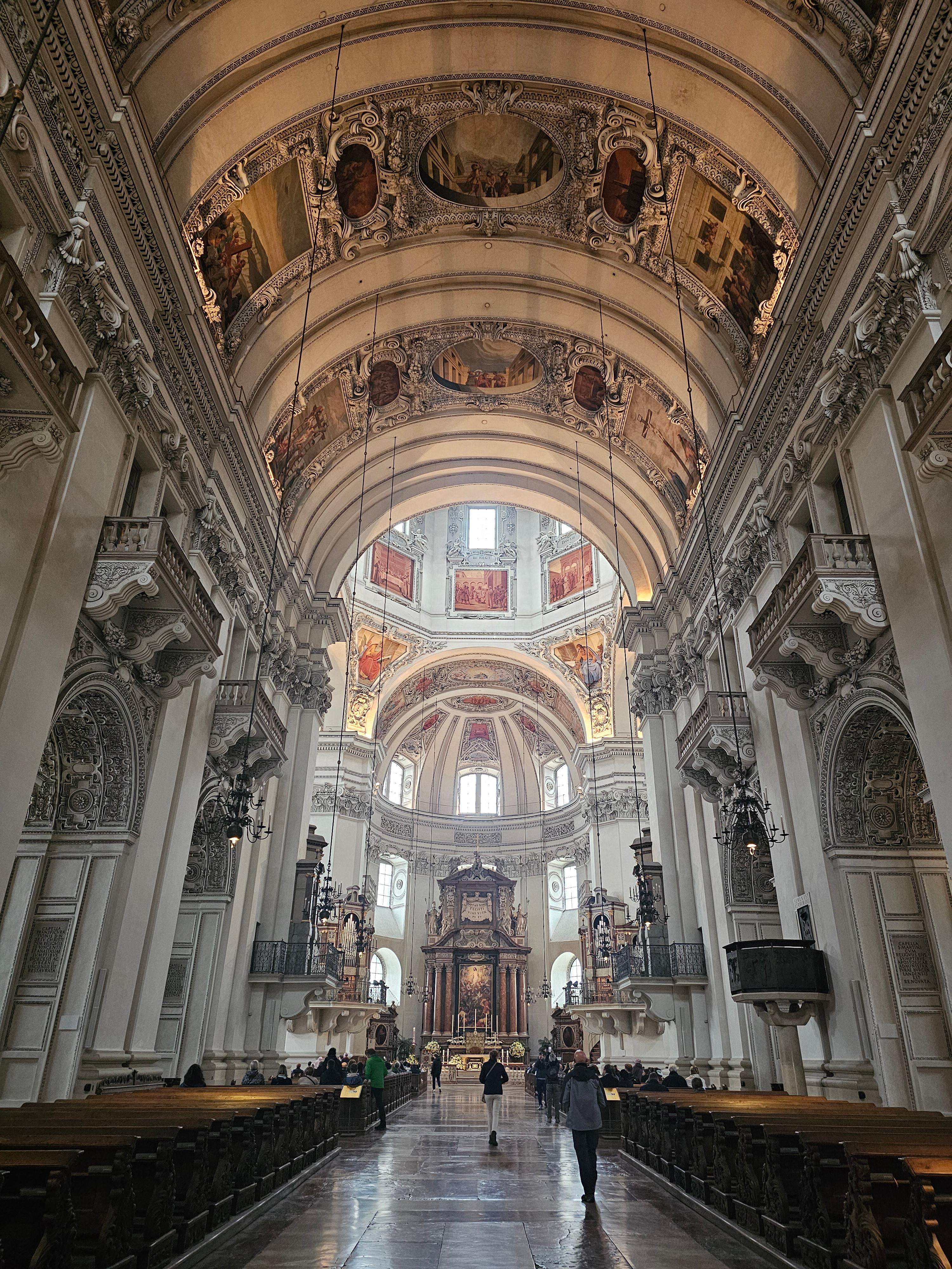 대성당 내부에 설치된 5개의 오르간은 지금도 많은 음악회와 미사에서 실제 연주되고 있으며, 여름철에는 "잘츠부르크 페스티벌" 기간 중 일부 프로그램이 대성당 안에서 열리기도 합니다. 웅장한 파이프 오르간 소리와 고풍스러운 내부 장식은 관광객들의 감탄을 자아내기 충분하죠.