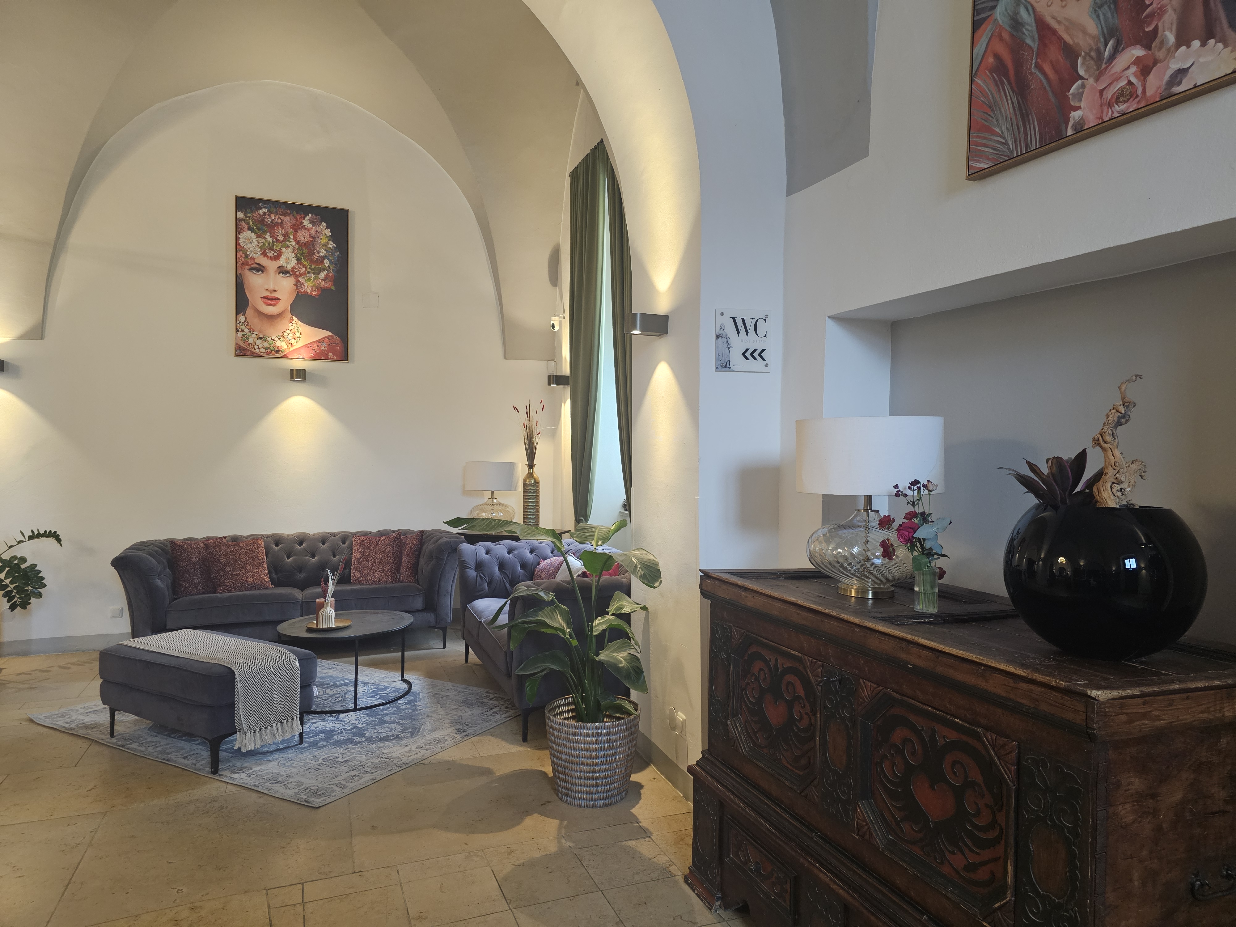 궁전 중정의 고전 바닥과 햇살이 비치는 테라스, 나무와 꽃이 어우러진 정원 서클은 여유로운 산책 후 휴식에 이상적이며, 봄과 여름엔 야외 식사도 인기 있으며, 겨울에는 Advent Magic(아드벤트 마켓) 기간 동안 조명과 따뜻한 분위기로 변신