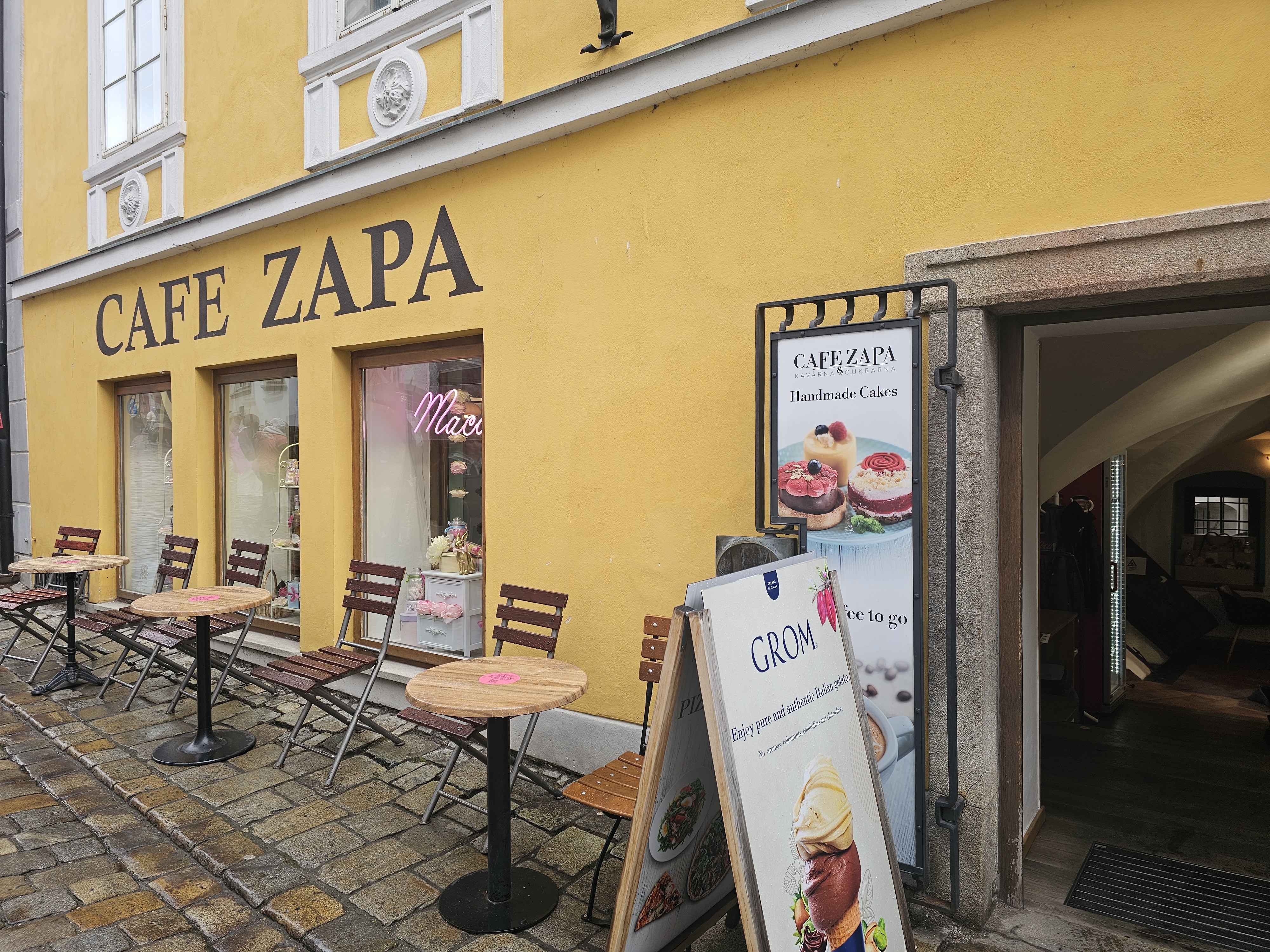 Pizzerie Latrán은 체스키 크룸로프 성에서 단 5분 거리에 위치해 있습니다. 정확한 주소는 Latrán 37, 381 01 Český Krumlov, 관광객이 가장 많이 걷는 라트란 거리 한가운데에 있어요. 성 관람을 마친 후, 또는 구시가지 탐방 중 잠시 쉬고 싶은 시간에 딱 맞는 위치죠. 간판은 그리 크지 않지만, 고풍스러운 석조 건물과 벽돌 벽이 분위기 있는 유럽 감성을 자극합니다.