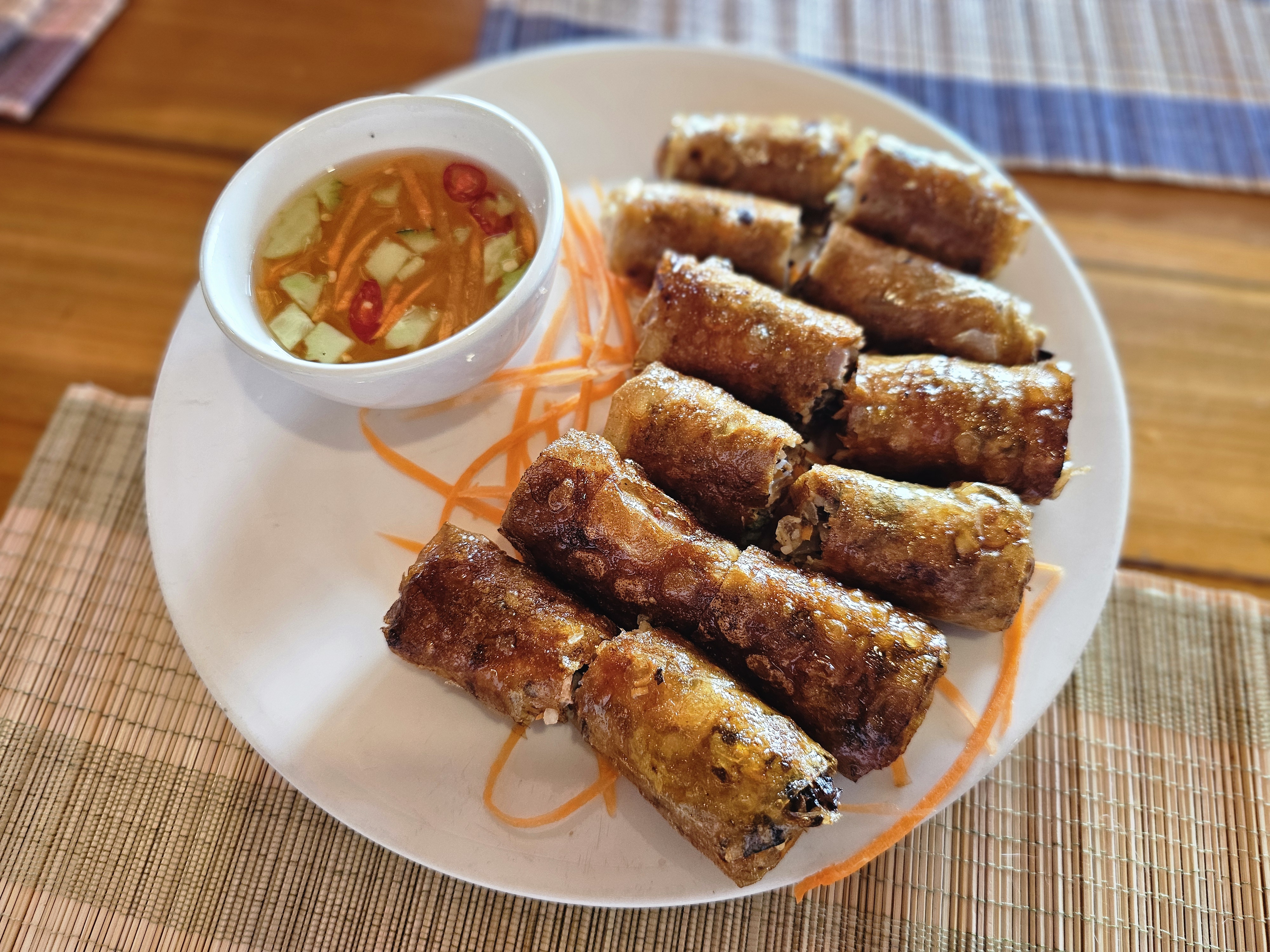 스프링롤은 바삭하게 튀긴 라이스페이퍼 속에 신선한 채소와 해산물이 듬뿍 들어가 있었는데, 소스와 곁들어 먹으니 맛있더라고요. 고슬고슬한 쌀밥과 함께 나온 코코넛 카레는 부드럽고 코코넛 풍미가 가득했는데, 생각보다 맛있었어요.