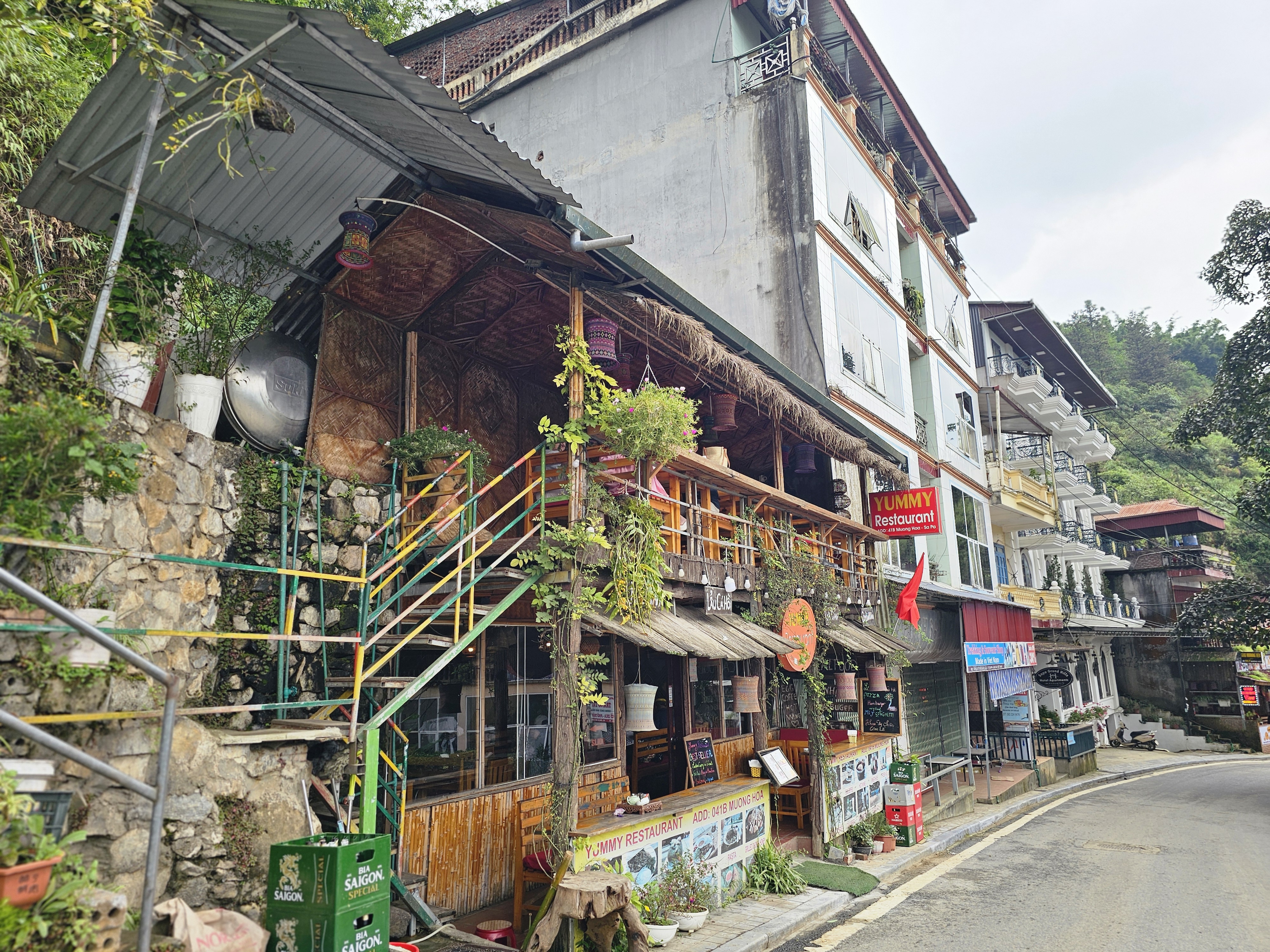 사파 KK 호텔 후문에서 쭉 걸어내려가면 나오는 가성비 맛집 YUMMY Restaurant을 방문했습니다. 시원한 바람을 맞으며 사파의 풍경 따라 걸어가니 너무 좋았습니다.