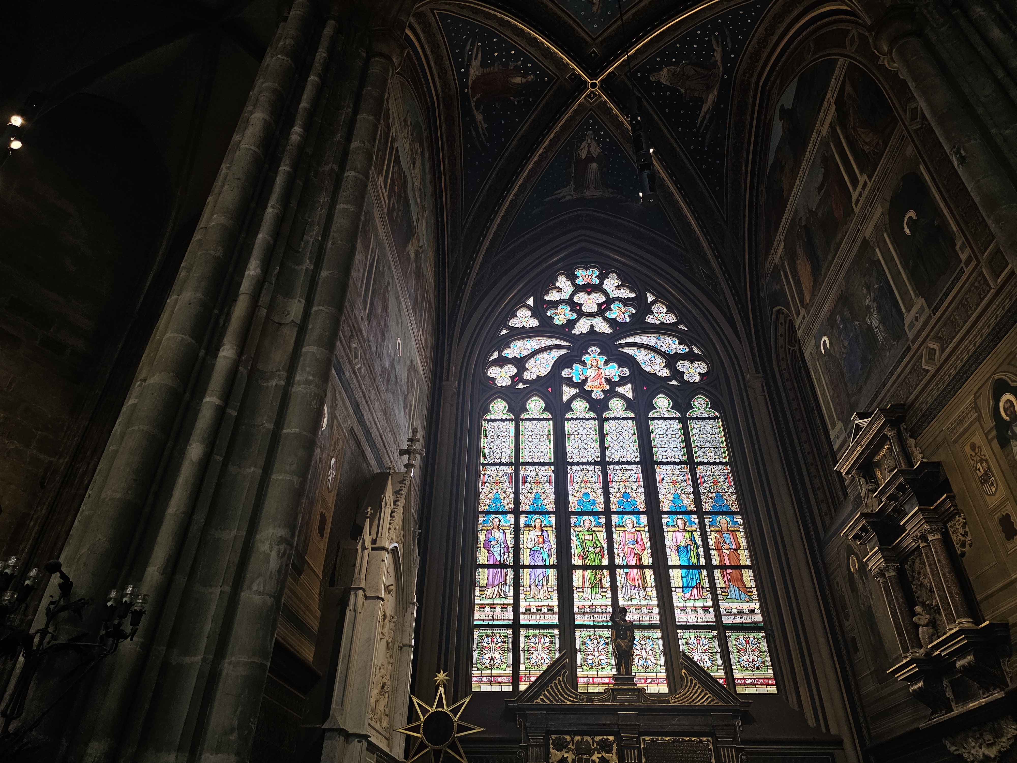💒 성 비투스 대성당 (St. Vitus Cathedral): 프라하성의 중심이자 가장 웅장한 건축물. 고딕 양식의 정수로, 내부 스테인드글라스와 지하 왕실묘는 꼭 봐야 할 명소